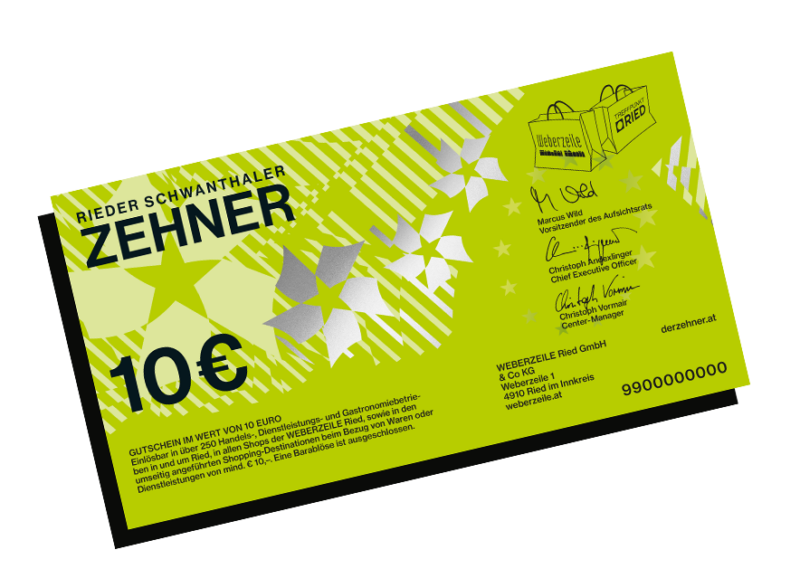 100 brands | 13 shopping centers | 250 stores in and around Ried | 1 gift certificate
